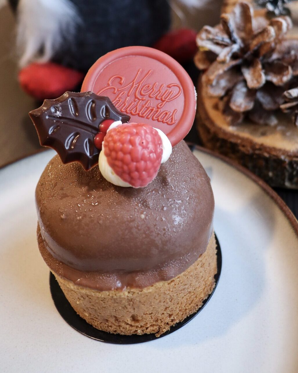 gebonden kersen en afgewerkt met pistache bavaroise